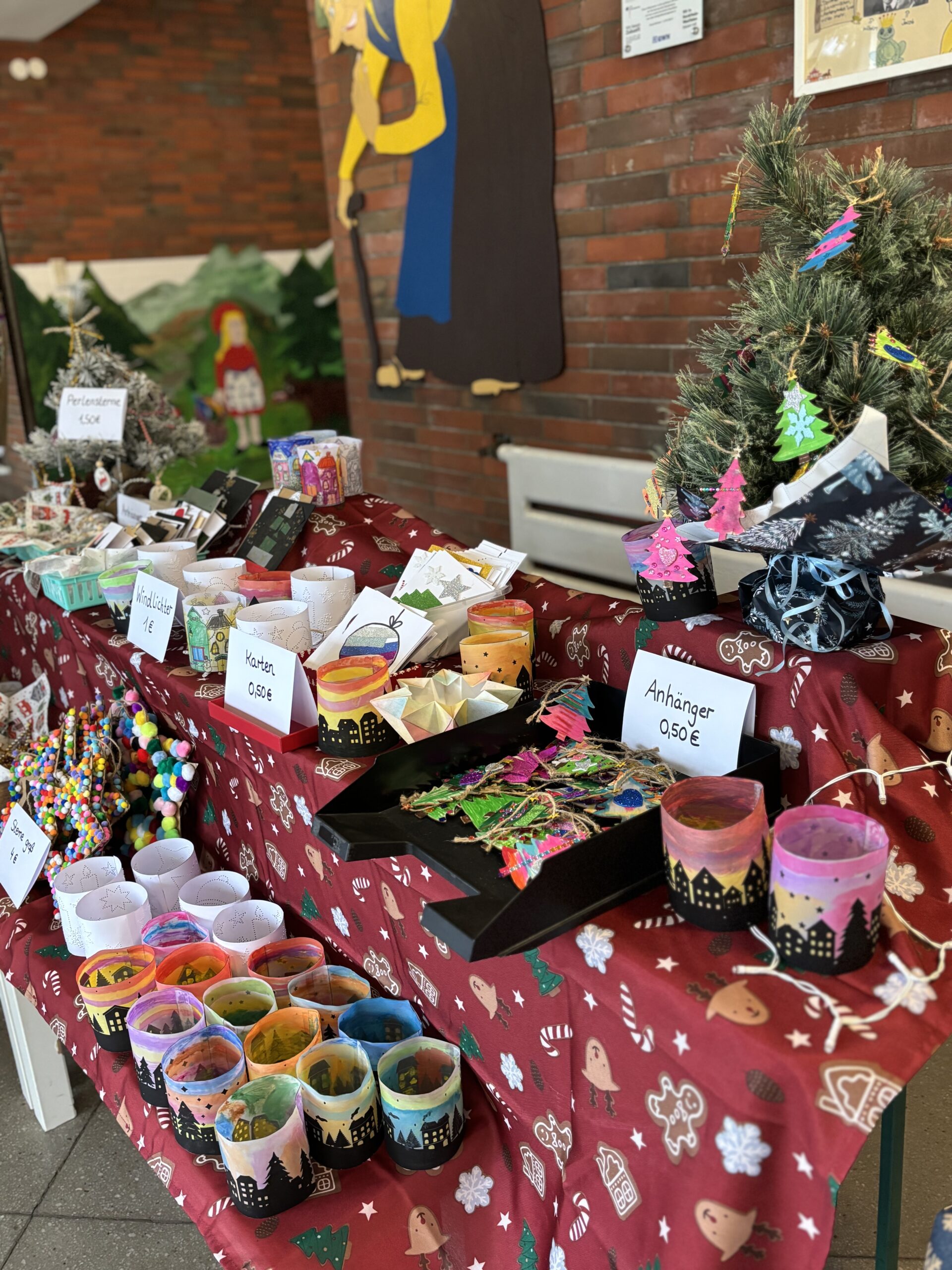 Am Freitag war es dann so weit: Unser innerschulischer Weihnachtsbasar öffnete seine Türen. Die Kinder präsentierten stolz ihre selbst gefertigten Artikel, die mit großer Begeisterung bestaunt und mitgenommen wurden. Bei einer gemütlichen und stimmungsvollen Atmosphäre konnten Schülerinnen und Schüler, Eltern, Lehrkräfte sowie Mitarbeitende der OGS gemeinsam in die winterliche Vorweihnachtszeit eintauchen.